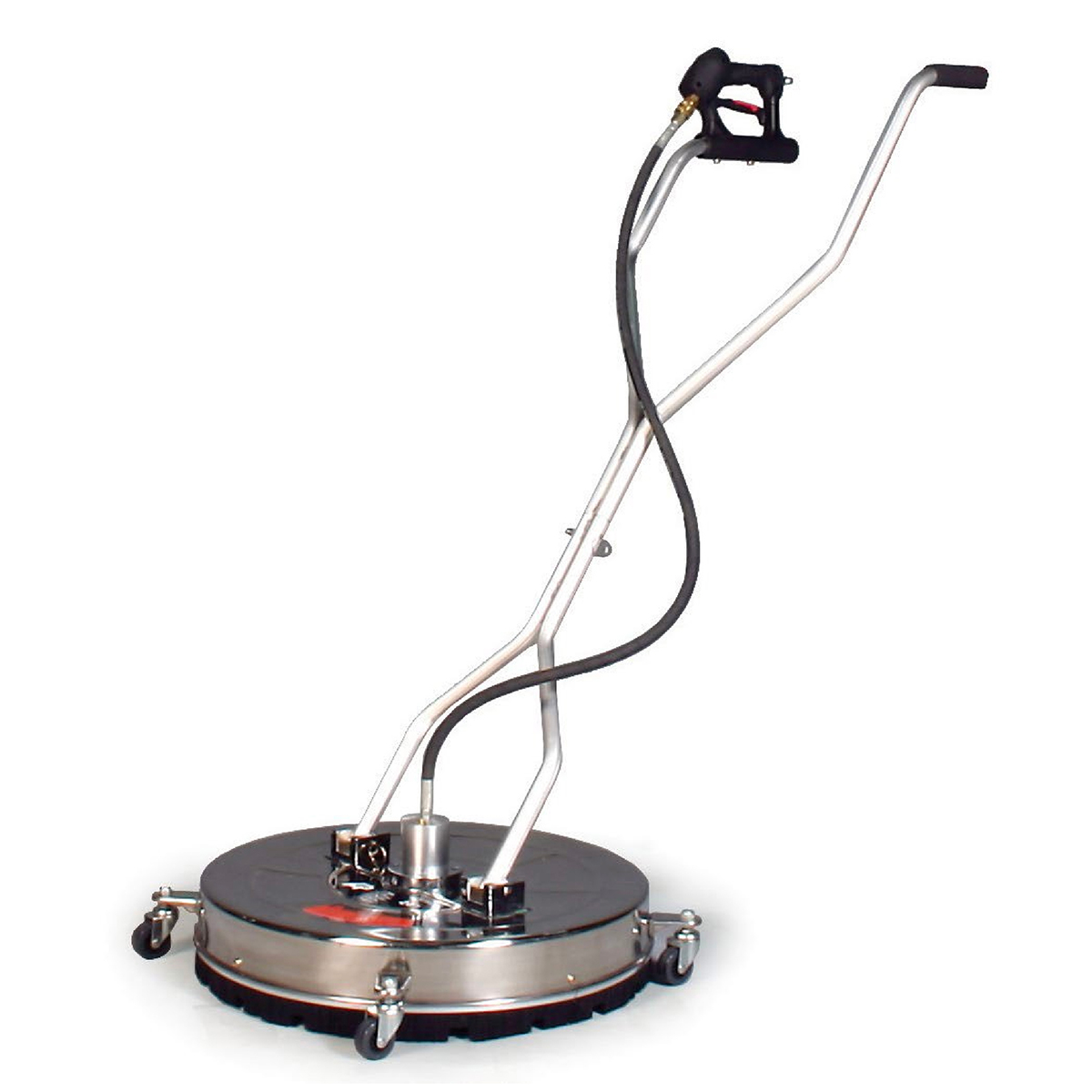 Are you tired of seeing uneven marks or lines on concrete when pressure washing? The new A+ Stainless Steel Surface cleaner from Hotsy Equipment Co. is the answer. Small nozzles on a spinning arm produce a smooth, even cleaning path. 4 Caster wheels help maneuverability and are ideal for cleaning aggregate and stamped concrete. The A+ Surface Cleaner will save you time, water, and effort. It produces a professional uniform finish without soaking your clothes or your wallet!